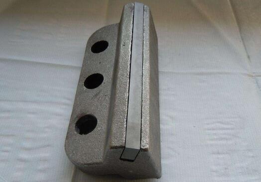 隨著耐磨技術(shù)的發(fā)展,目前在螺旋軸葉片的出口高壓區(qū)處,螺旋葉片普遍采用加裝耐磨塊的形式,主要采用陶瓷或耐磨合金作為耐磨材料。前者耐磨性更好,但就怕硬物的磕碰,且陶瓷塊與底板的黏合強(qiáng)度不夠,容易掉落;后者可與耐磨塊底板直接焊接,結(jié)合牢固,但是耐磨性遜于陶瓷。